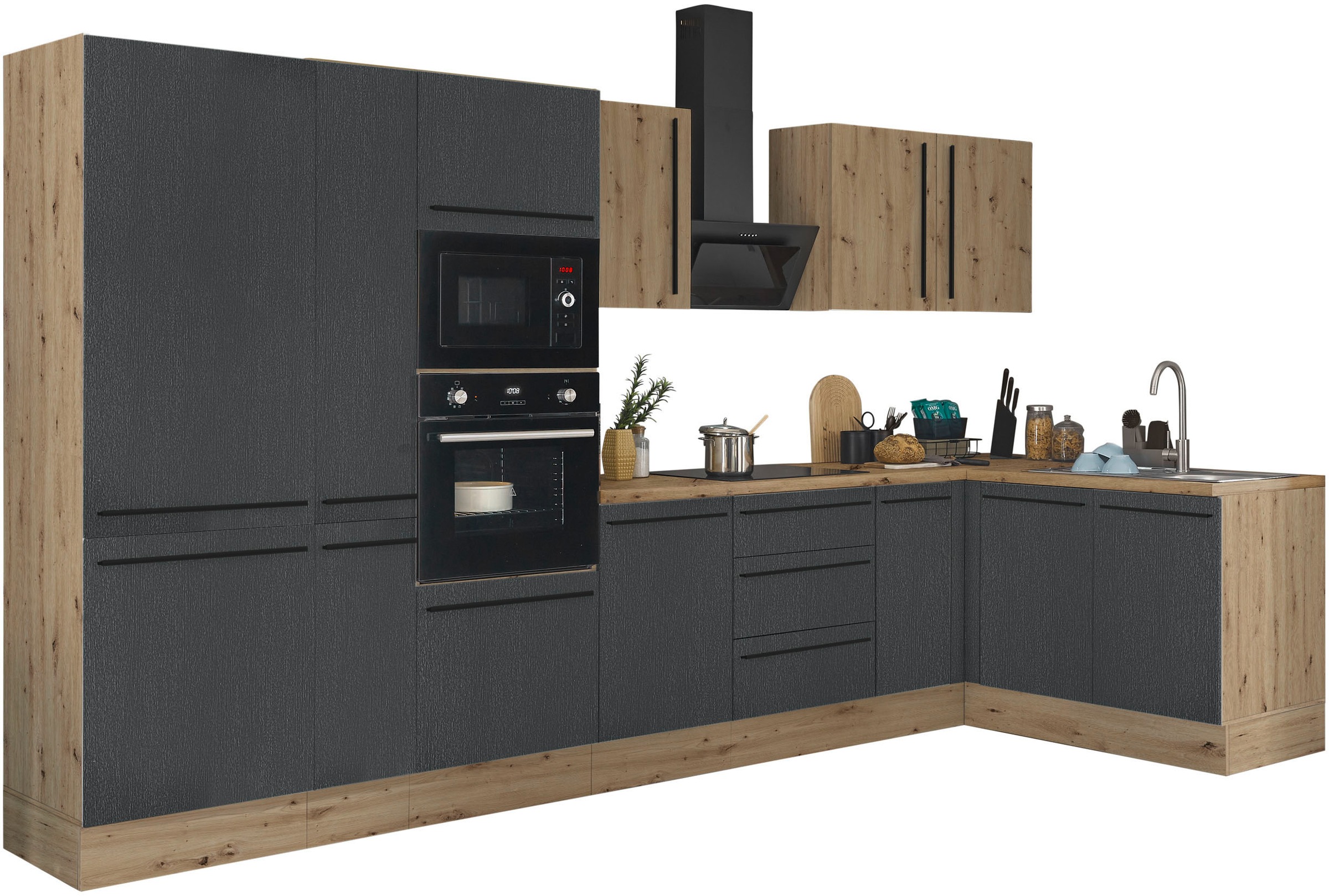 - Winkelküche »KS-Colmar« mit E-Geräten, Stellbreite 210/360 cmKOCHSTATIONUrsprünglicher PreisUVP 5.249,00 €Rabatt- 1.589,01 €Aktueller Preis3.659,99 €KühlschrankProduktdatenblattBackofenProduktdatenblattGeschirrspülerProduktdatenblattDunstabzugshaubeProduktdatenblatt+ Farben