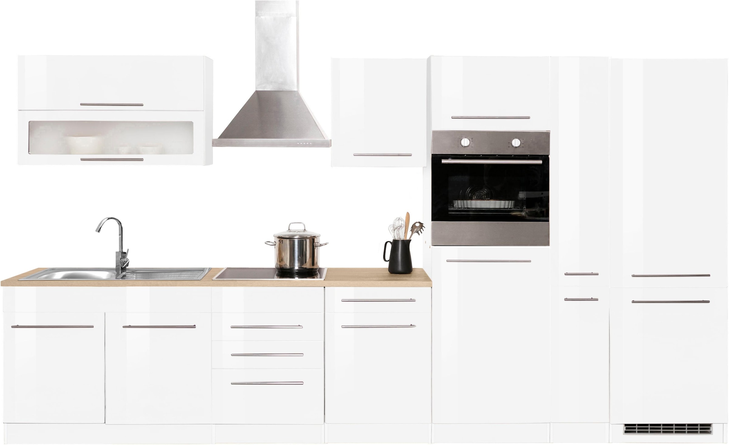 - Küchenzeile »KS-Lagos, Breite 360 cm, wahlweise mit E-Geräten« Ceran-oder...KOCHSTATIONUrsprünglicher PreisUVP 3.089,99 €Rabatt- 799,00 €Aktueller Preisab 2.290,99 €BackofenProduktdatenblattGeschirrspülerProduktdatenblattKühl-GefrierkombinationProduktdatenblattDunstabzugshaubeProduktdatenblatt