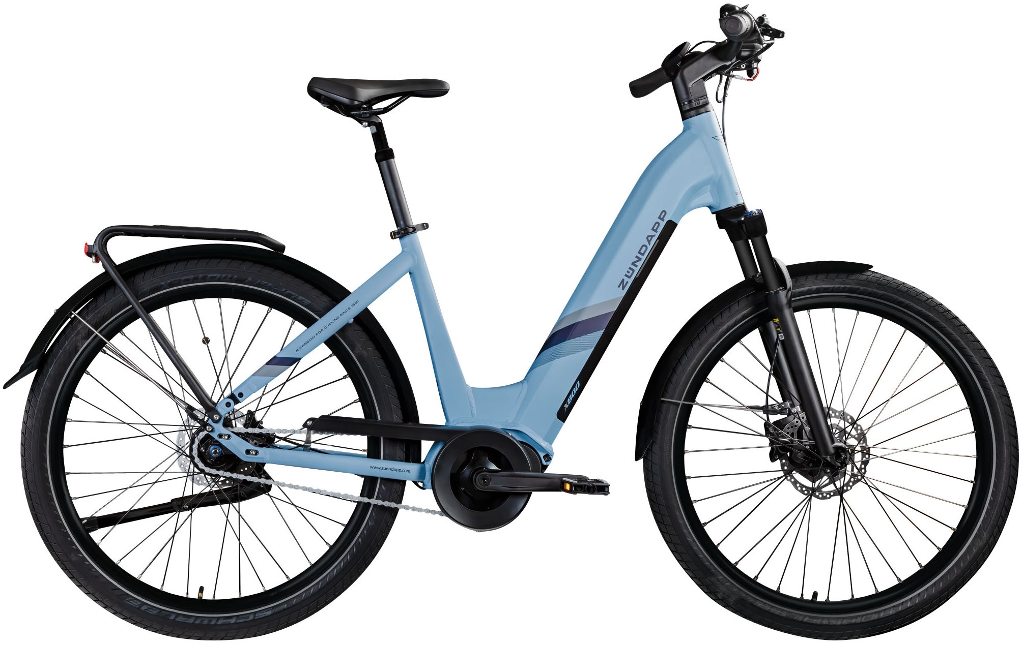 - Das Zündapp X800 ist ein 28 Zoll E-Bike mit einem Tiefeinsteigerrahmen aus Aluminium, der das Auf- und Absteigen erleichtert.