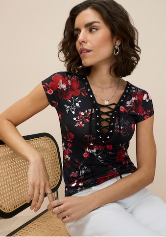 + Farben - Kurzarmshirt mit Alloverdruck mit Cut-out, figurbetontes T-ShirtVivanceUrsprünglicher Preisstatt 34,99 €Rabatt- 28 %Aktueller Preis24,99 €