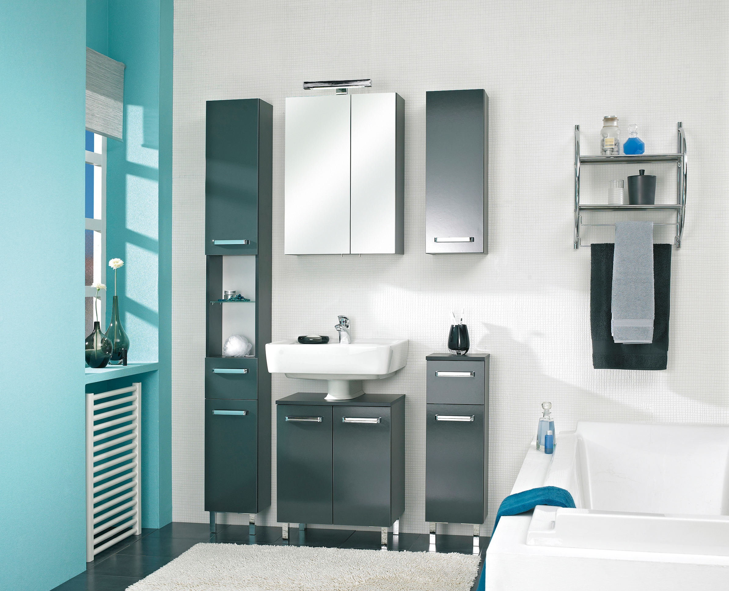 - Badmöbel-Set »Quickset 327 5-teilig, Waschbeckenunterschrank und LED-Spiegelschrank«...SaphirUrsprünglicher PreisUVP 976,00 €Rabatt- 58,01 €Aktueller Preis917,99 €
