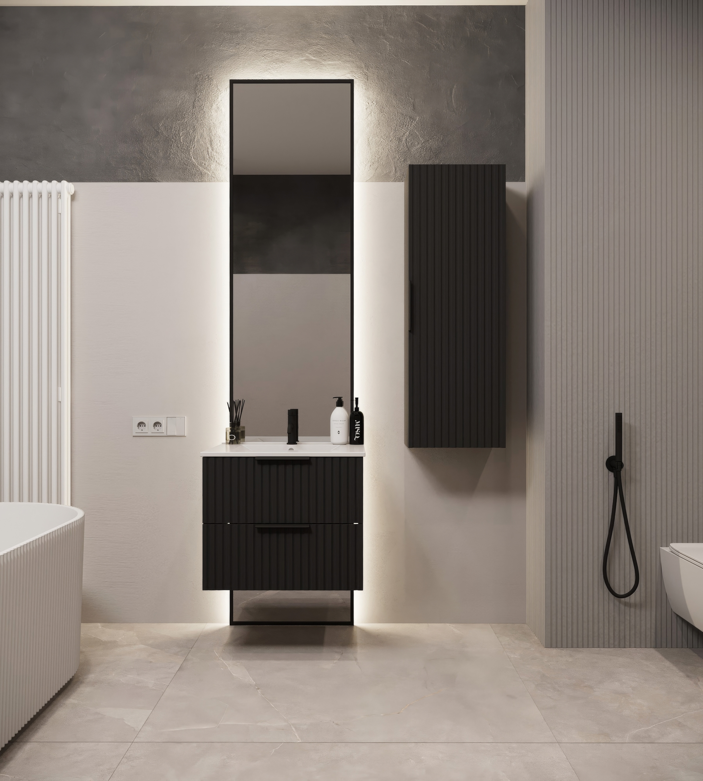 - Waschbeckenunterschrank »Locri, Höhe 84 cm, Rillenoptik, Metallkufen« 2 Stk. tlg....welltimeUrsprünglicher PreisUVP 928,00 €Rabatt- 508,01 €Aktueller Preis419,99 €