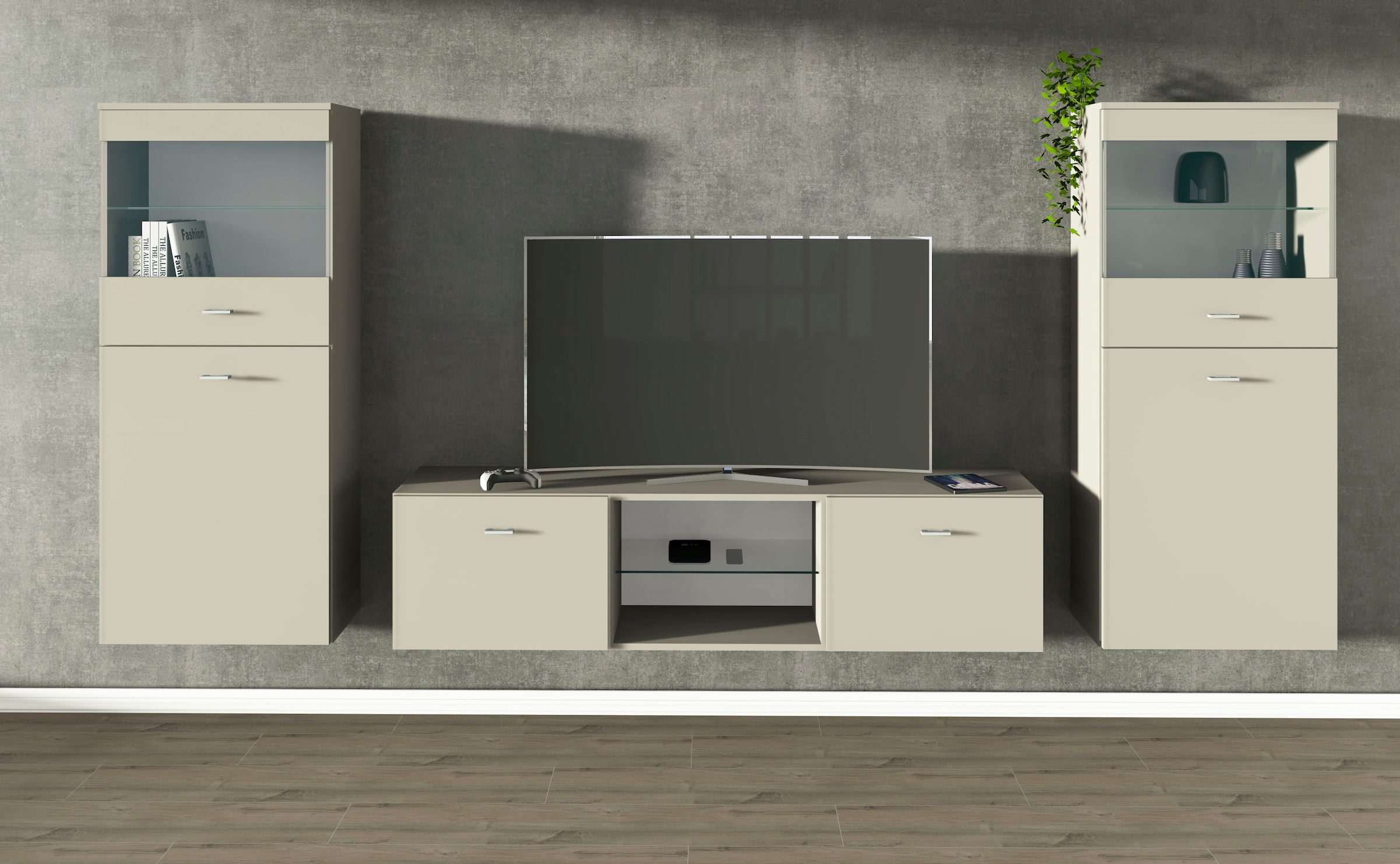 + Farben - Wohnwand »Scala, moderne Mediawand mit Vitrinen und Lowboard« Komplett-Set,borchardt MöbelUrsprünglicher PreisUVP 459,00 €Rabatt- 116,17 €Aktueller Preis342,83 €